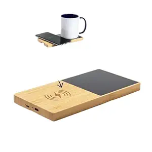 BYT 15W Bamboo Wireless Charger with Cup Warmer, Fast Charging Station for Home & Office, Sustainable Wood Coffee Mug Heater, USB-C -Tan